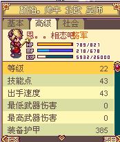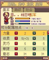 人物属性共分为3项:基本,高级,社会。         首先介绍的是基本                  在基本这页显示的是:国家,国家职位,hp,mp,exp,可分配属性点,属性,包括装备附加的属性,会用括号来表示。         每升一级会增加3点属性点。属性点对不同职业的影响也不同。属性点有:力量,体质,灵巧,敏捷,意志,智力。         接着介绍的是高级